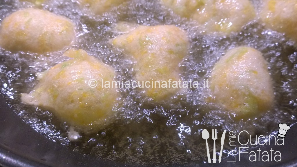 Preparare il lievitino al mattino presto ,comunque 5/6 ore prima.In una ciotola mettere la farina ,l’acqua e il lievito ,deve essere molto idratato ,lavorato grossolanamente e posto a crescere nel forno spento con la lucina accesa a 24-26 gradi .Dopo 5/6 ore l’impasto è più che raddoppiato e preparare l’impasto con il resto della farina ,l’acqua ,il resto del lievito ,il sale (ho aggiunto un po’ di pepe macinato e due cucchiai di grana grattugiato) con lo sponge preparato ,impastare per bene fino a che è bello incordato e negli ultimo minuto aggiungere i fiori di zucca precedentemente lavati ,puliti e tagliati a striscioline. .Deve essere un impasto morbido ,liscio ed idratato. Far lievitare l’impasto ci vorranno un paio d’ore per raddoppiare di volume.Con un cucchiaio preparare le zeppoline e friggerle in olio bollentissimo e servire subito ben caldi.