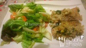 Prendere due bei filetti di salmone possibilmente senza lisca e dalla parte della coda ,appoggiarli in una teglia e mettere sopra la mollica di pane con prezzemolo zenzero e curcuma a pezzetti un pochino d’aglio sale olio e una generosa premuta di limone,far marinare un’oretta e infornare dieci minuti a 200 gradi ,servire ben caldo con una insalata mista….
